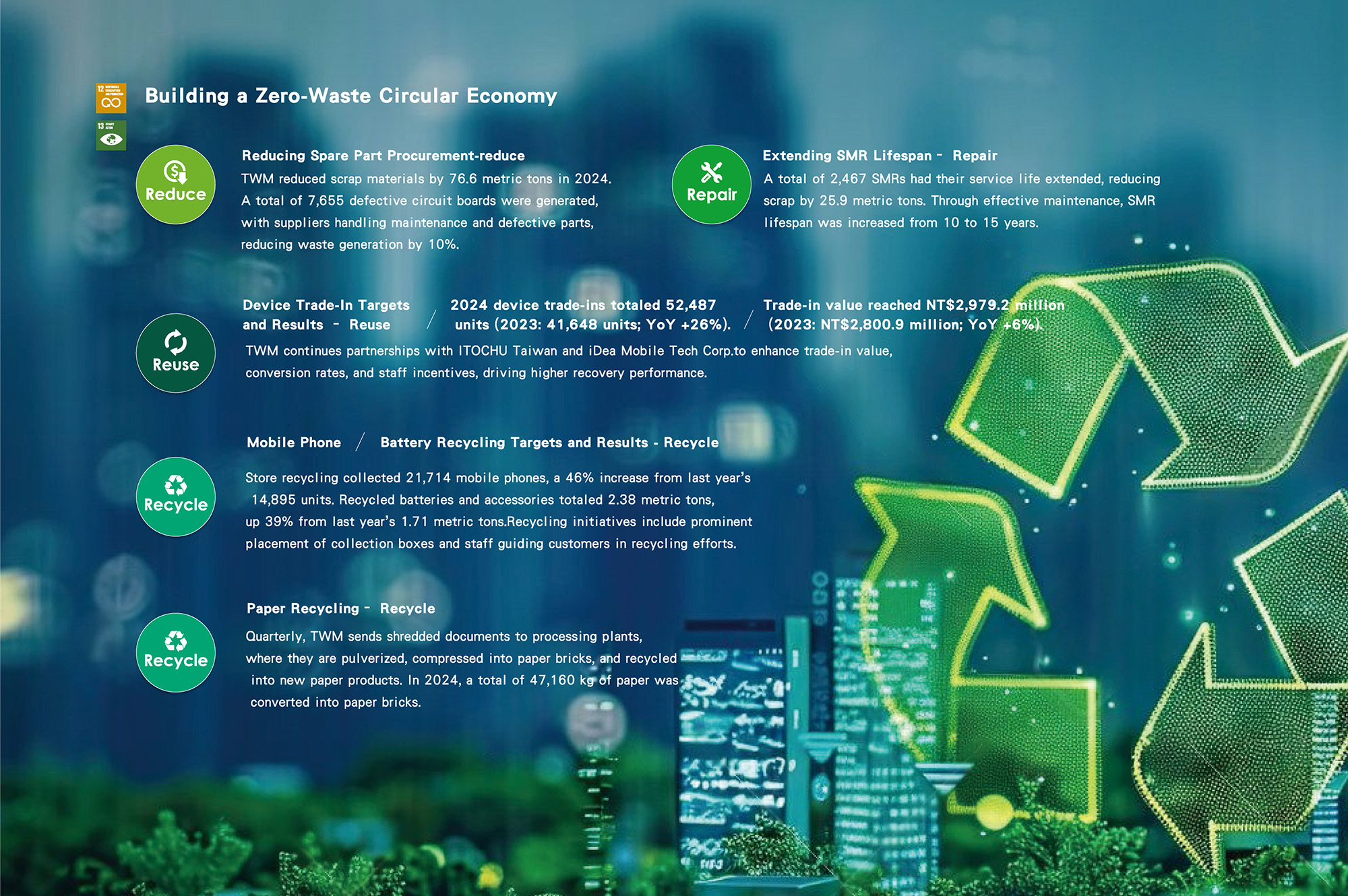 Taiwan Mobile is committed to responsible environmental stewardship throughout the lifecycle of