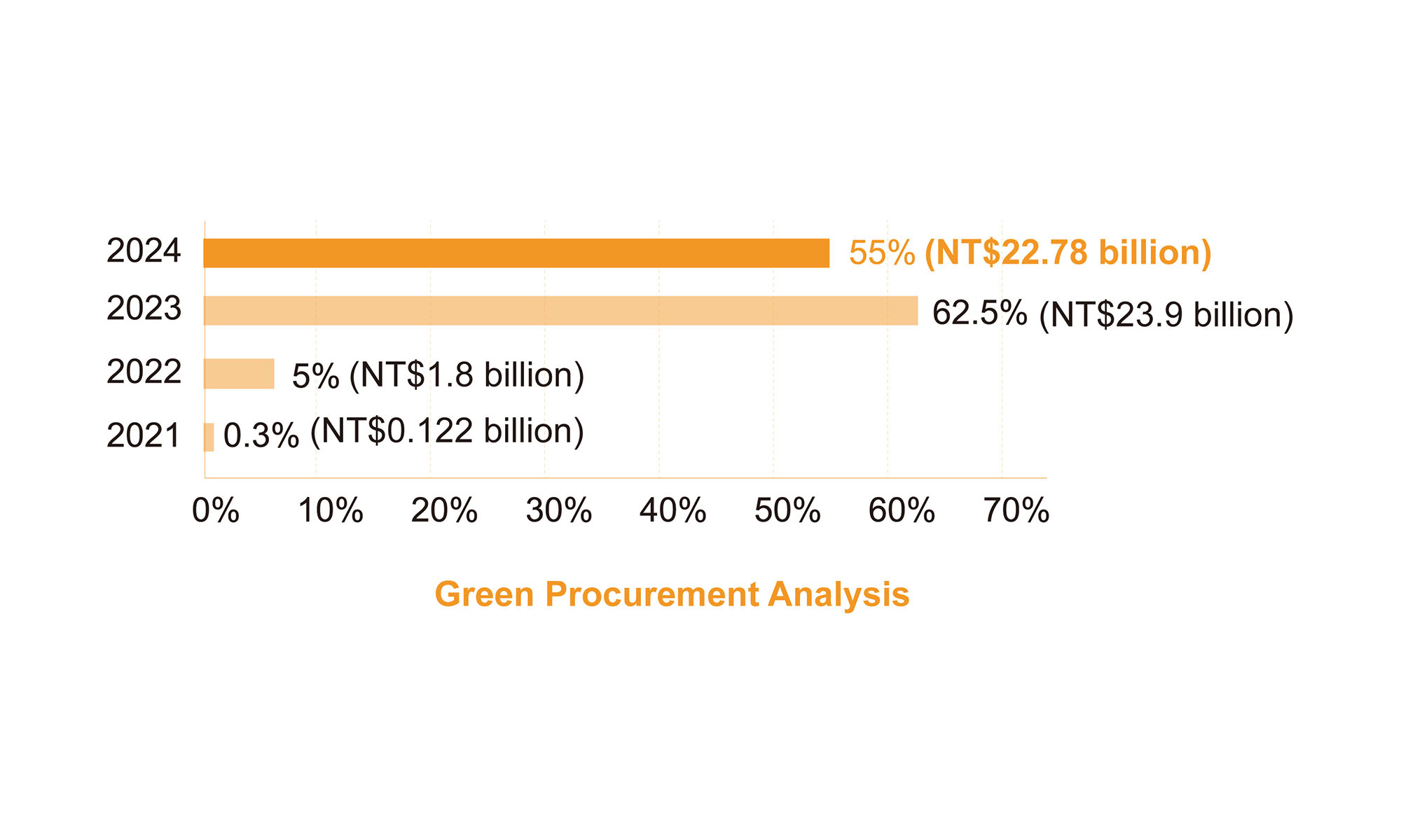 In 2024, Taiwan Mobile had a total of 570 cooperating suppliers, categorized into six main types based on procurement categories. The category with the highest procurement amount was consumer electronics. Taiwan Mobile's global procurement amount in 2024 was NT$ 1.31 billion, with suppliers distributed across Taiwan, Asia, America, and Europe. The total local procurement amount in Taiwan reached NT$39.78 billion, accounting for 96.79% of the total procurement amount.